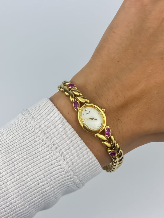 Rare Seiko Vintage Watch Genuine Rubies and Gold Plated Bracelet