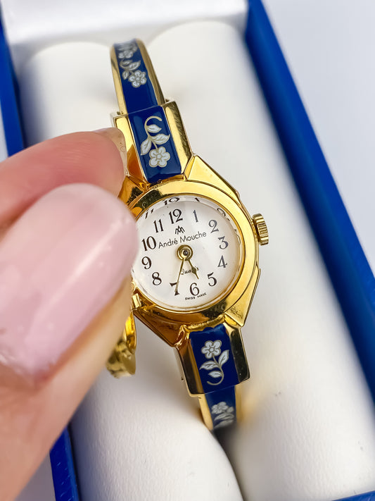 André Mouche Vintage Watch Peek a Boo Beige Blue