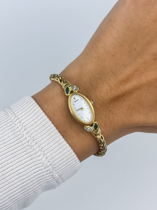 Very Rare Seiko Vintage Watch Genuine Emeralds & Diamonds