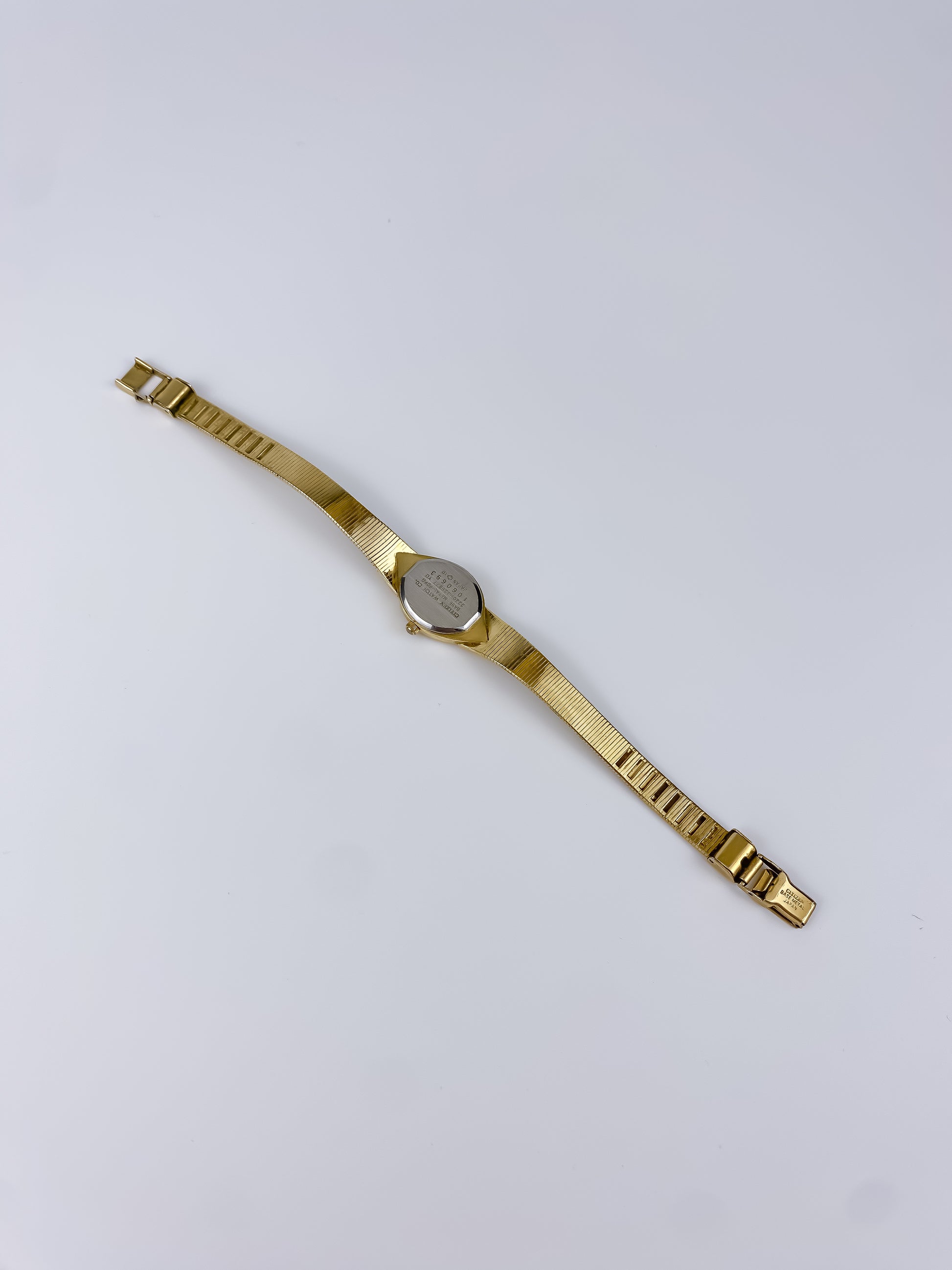 Citizen Vintage Watch Gold Plated Rectangular Diamonds Dial Integrated Patterned Bracelet
