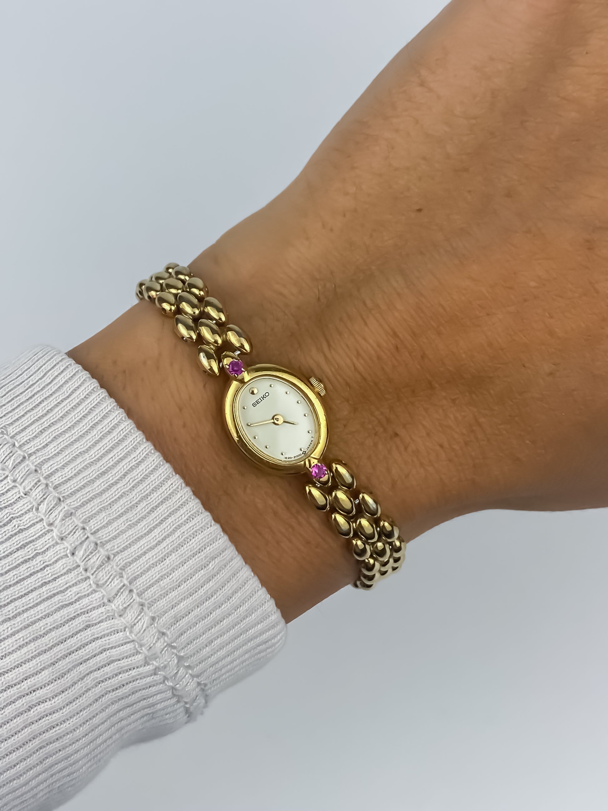 Rare Seiko Vintage Watch Genuine Rubies and Gold Plated Bracelet