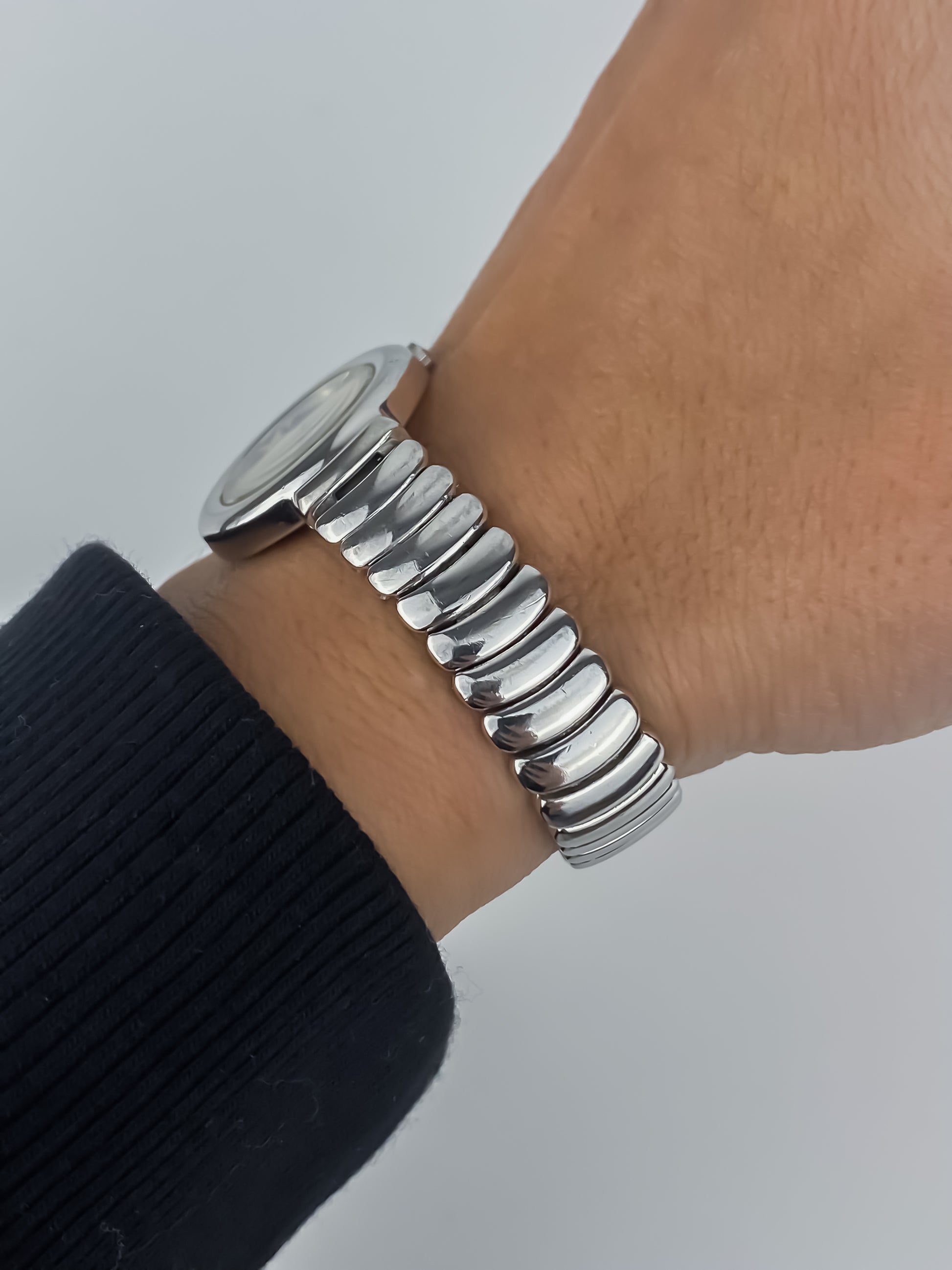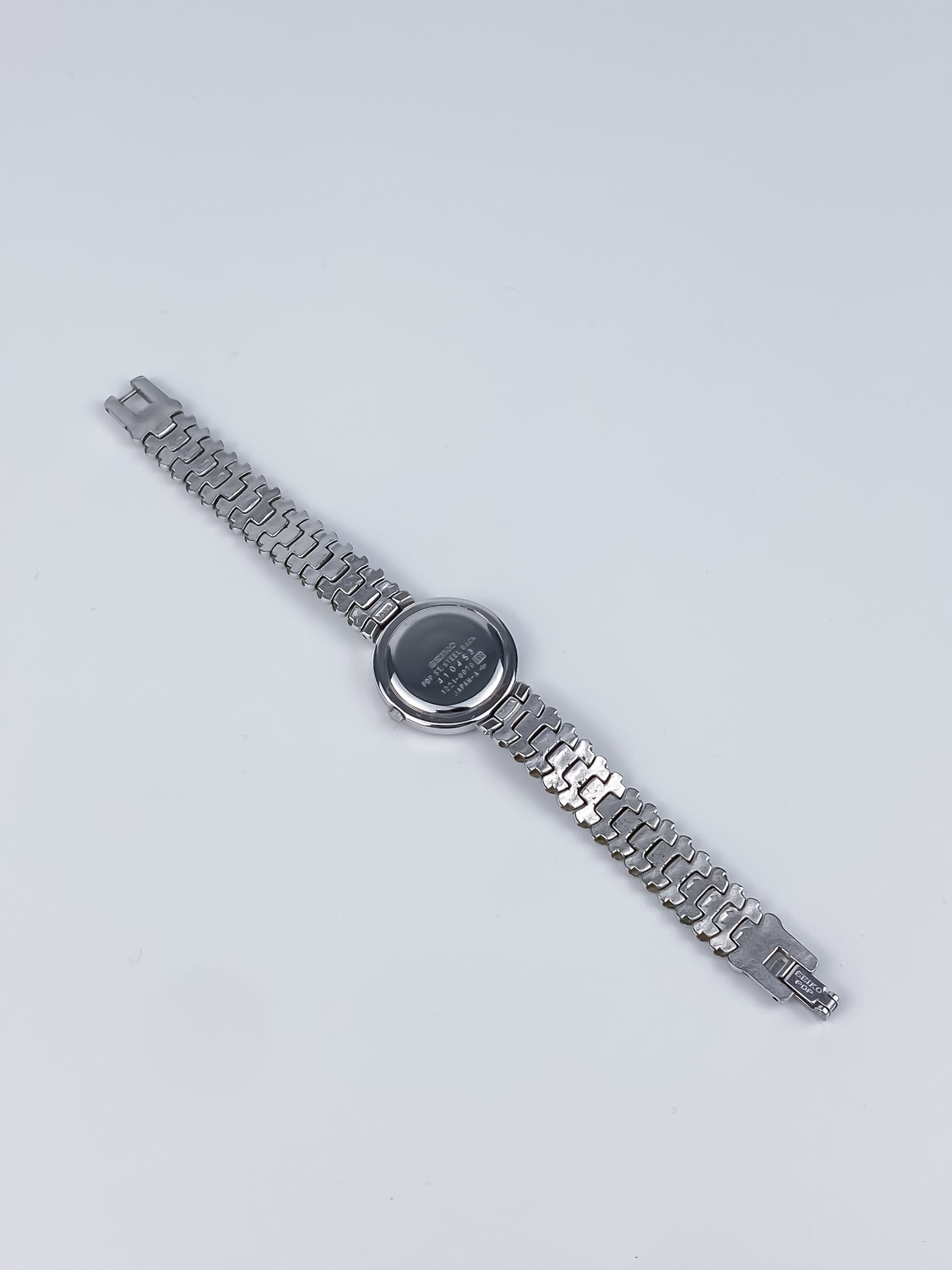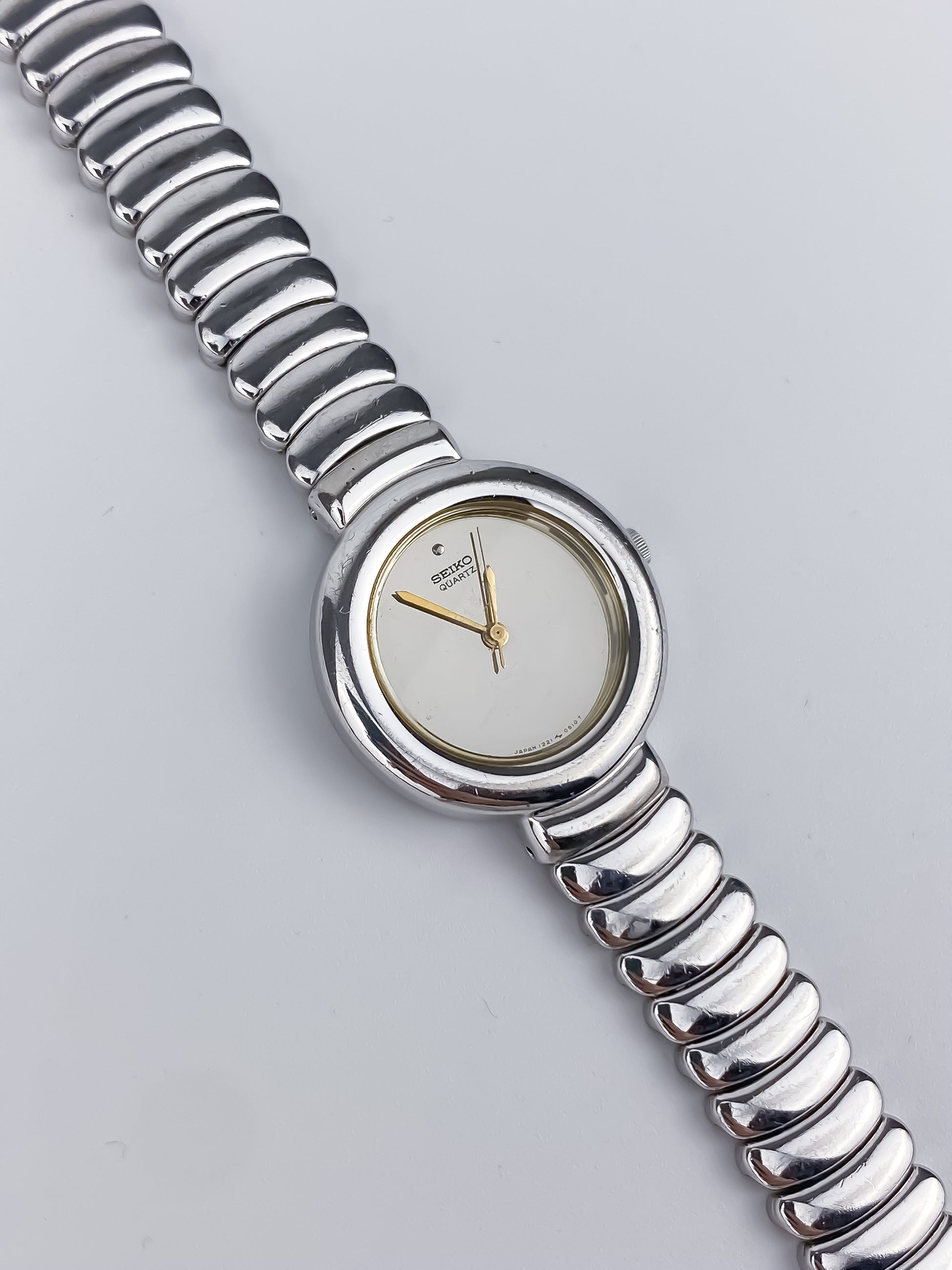 Seiko Vintage Silver Watch Articulated Bracelet Round Dial